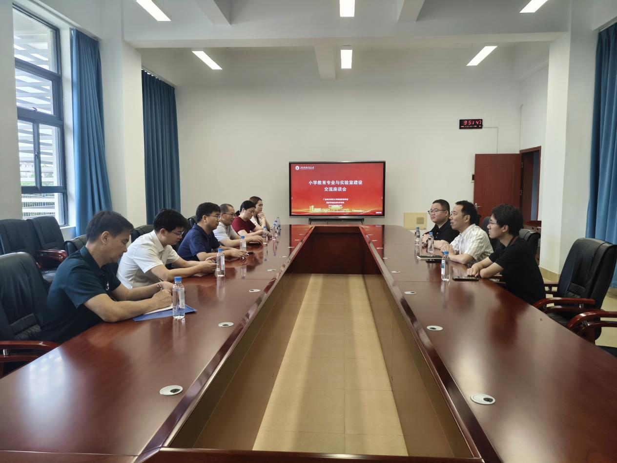 在随后的座谈会上,双方围绕小学教育专业建设、实践教学改革及实验室资源利用等共同关注的话题展开深入探讨,介绍了学院办学定位、学科建设、人才培养及G-STAR理念、博士校长行动等特色工作开展情况,分享了在小学教育专业建设、产教融合与校地协同育人等方面的经验做法。肇庆学院教育科学学院来访教师介绍了其小学教育专业建设、人才培养方案、实践教学等情况。双方均表示,希望以此次交流为契机,进一步加强联系,相互借鉴,共同推动小学教育人才质量稳步提升。