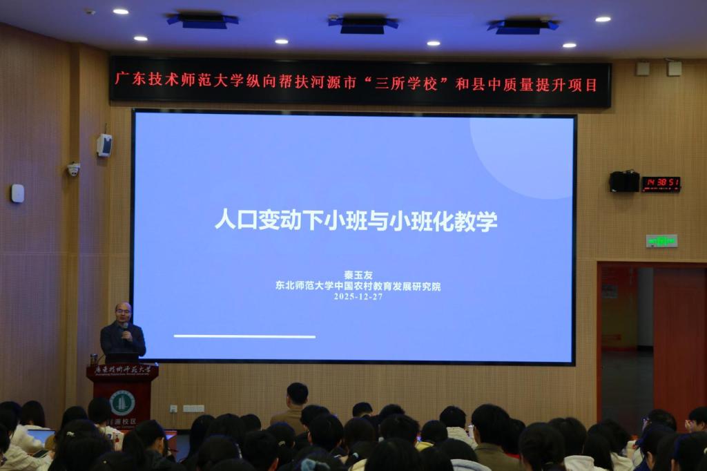 为加强学术交流,促进我校学术水平提升,12月27日,我校特邀教育部长江学者特聘教授、东北师范大学教育学部党委书记秦玉友为我校进行了主题为“人口变动下小班和小班化教学”的学术报告。本次讲座由基础教育学院承办,学院熊华军教授和谭高贵博士分别主持,基础教育学院全体师生300余人参与。