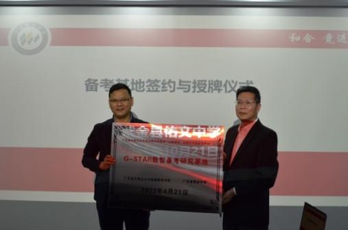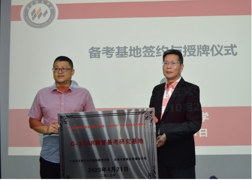 在签约与授牌环节中,副校长苏晖代表学校与六所中学签署“县中数智备考研究基地”协议并授牌,包括东源县东源中学、东源县灯塔中学、广东省紫金中学、紫金县佑文中学、紫金县蓝塘中学及广师大河源教育集团高埔岗学校。该基地将引入人工智能技术,融合课程、测评与研学环节,全面提升中高考备考质量。