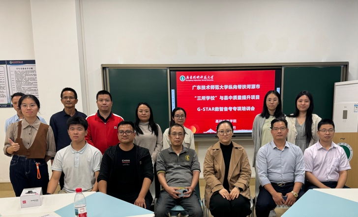 为贯彻落实《广东省师范(教师教育)院校纵向帮扶欠发达地区“三所学校”和县中质量提升工作方案(2024-2027年)》精神,切实推进广东技术师范大学纵向帮扶河源市三所学校和县中质量提升发展。2025年10月29日下午,广东技术师范大学基础教育学院成功举办G-STAR“数智备考”专项培训会。来自河源市多所基地校及预备基地校的教师代表、广师大基础教育学院师生以及技术支持单位代表共计百余人参会。