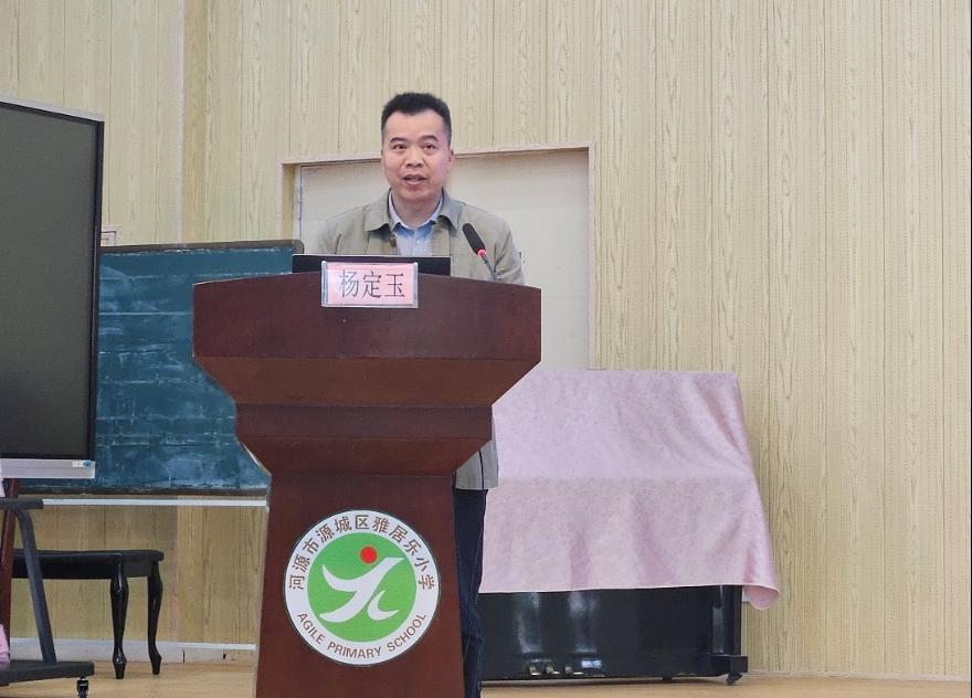 为贯彻落实纵向帮扶政策要求,进一步加大人才培养力度,推动研究生实践能力提升与城乡基础教育优质均衡发展,2025年11月5日,广东技术师范大学基础教育学院专业学位研究生联合培养基地暨源城区雅居乐小学城乡教育共同体名教师、名班主任工作室授牌仪式在雅居乐小学隆重启幕。基础教育学院杨定玉教授、专任教师闫文、研究生秘书叶芷倩,源城区教师发展中心主任李宏胜,雅居乐小学校长刘燕芬、河源市第一小学刘舒玉校长、河源市第三小学张小燕副校长、东源县第一小学邹红燕校长、东源县第五小学吕丽燕校长,以及源城区雅居乐小学城乡教育共同体名教师、名班主任工作室成员、我校基础教育学院全体研究生等参加会议。