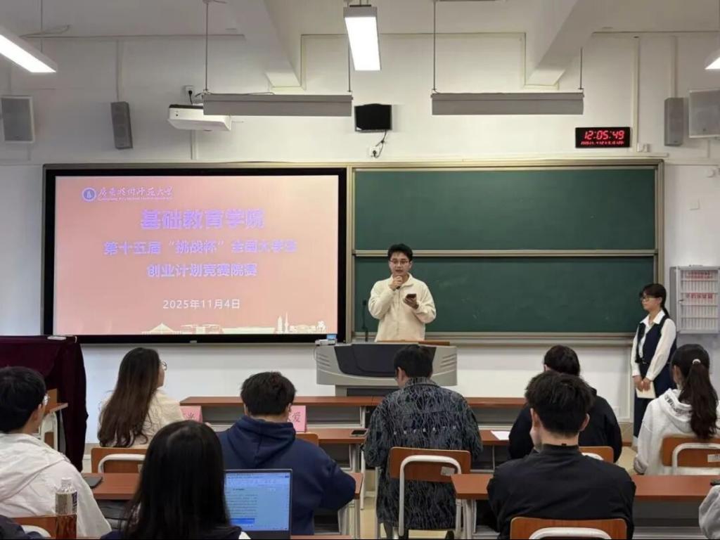 基础教育学院第十五届“挑战杯”中国大学生创业计划竞赛院赛于2025年11月4日在厚德楼602成功举办。本次竞赛以“教育初心筑梦,创新思维启航”为主题,吸引学院十一支跨年级跨学科项目团队同台竞技,展现师范生教育创新实践能力。