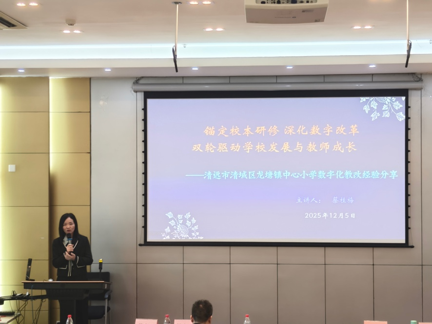清远市清城区凤翔小学蔡桂梅校长以“锚定校本研修 深化数字改革 双轮驱动学校发展与教师成长”为主题,分享了其在一所乡镇小学通过数智化教学改革驱动学校整体发展的实践经验。她详细介绍了如何以“爱种子”(后升级为“G-STAR”)数智化课堂模式为抓手,构建“思想工作实、培训工作实、教研工作实、活动推进实”的校本研修体系,通过“点点用、改改用、创创用”的阶梯式教师培养和“学习共同体”构建,有效促进了教师专业成长与学生综合素养提升,使学校焕发出崭新活力。