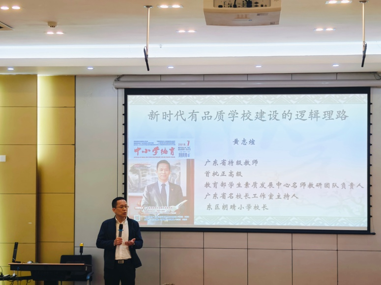 中山市东区朗晴小学教育集团党委书记黄志煊以“新时代有品质学校建设的逻辑理路”为题,结合其33年从教、27年担任校长的丰富阅历,深刻阐述了办学理念对于学校发展的决定性作用。他强调了“德性教育”与环境育人理念,分享了如何通过人性化管理、个性化激励、常态化沟通等方式,打造有归属感、有温度的教师专业共同体与发展共同体,从而营造强大的校园正向气场,实现学校高品质、有内涵的发展。