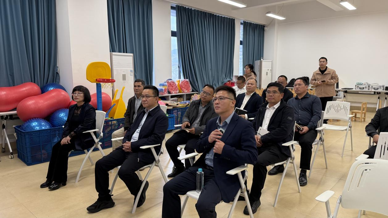 为贯彻落实《广东省师范(教师教育)院校纵向帮扶欠发达地区“三所学校”和县中质量提升工作方案(2024-2027年)》精神,2025年12月10日,东源县县委副书记陈甫逸飞一行莅临广东技术师范大学河源校区,实地参观了AI心育工程中心和低空经济研学基地。东源县教育工委书记、教育局党组书记、局长曾宪奕,东源县教师发展中心副主任游立新,东源中学校长赖召平,东江中学副校长欧阳班启,深圳市三高东源高级中学党总支书记金政松,实验中学校长肖家佳,崇文学校校长林景富,清平中学校长黄汉,仙塘中学校长朱卓辉等共赴广师大河源校区基础教育学院AI心育工程中心参观,基础教育学院筹备组组长熊华军等团队陪同调研。