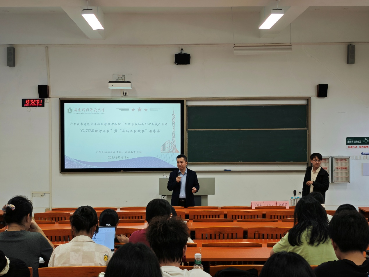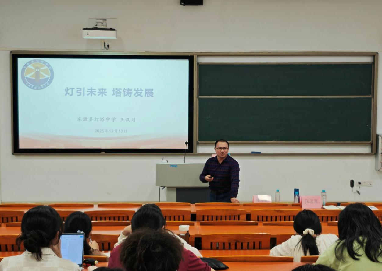 为深化小学教育专业学生对粤东西北地区基础教育发展的认知,推动教育理论与一线治校实践深度融合,2025年12月12日,广东技术师范大学基础教育学院于唯实楼109教室成功举办《粤东西北小学教育研究》专题讲座暨一线校长“我的治校故事”报告会。本次活动由杨定玉教授组织开展,2023级小学教育专业全体本科生和部分研究生到场聆听学习。活动聚焦我校纵向帮扶河源市“三所学校”与县中质量提升项目“G-STAR数智治校”系列内容,特邀东源县灯塔中学王汉习校长、紫金县蓝塘中学张运富副校长以及源城区雅居乐小学谢婷婷校长,结合自身治校经历,分享粤东西北地区基础教育治理与实践的宝贵经验。